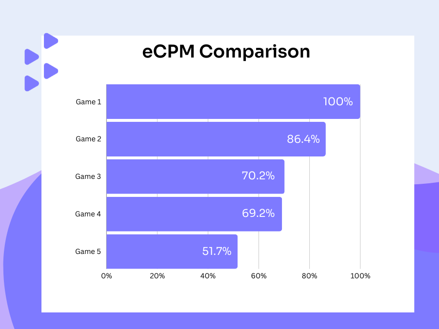 The combination and application of different ad formats can drastically influence a game's eCPM. Hence, when we compare eCPMs across different games, we must compare them with the eCPM of the same ad format.