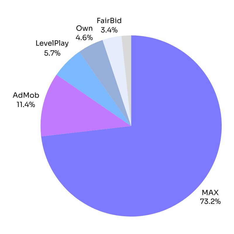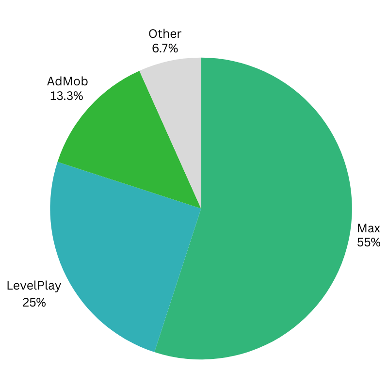 It’s also worth noting that, if you are using MAX mediation, you can expect that Applovin will be serving around half of your impressions, while with LevelPlay, the host networks will be generating a far lower share of all impressions.
