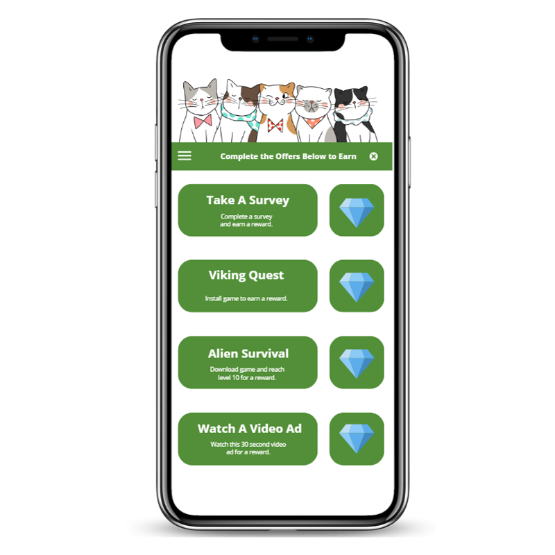 Your mobile offerwall presents players with a variety of objectives to complete in exchange for rewards. Users will be able to choose between several different actions:
